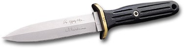 Applegate-Fairbairn je bojový nůž.Použití sklelného vlákna-vyztužené Delrinu v rukojeti, zesílenou v centru pro jistý úchop.Záštita dopředu ohnutá cross-Guard, která chrání prsty.Rovnováha nože je dosažena ocelovím závažím v rukojeťi - krásně ergonomické.Nůž se dodává s pouzdrem.Celková délka: 27.2 cm.Délka čepele: 15.0 cm. Váha: 245 g.Ocel: 440C.Rukojet':Plast.