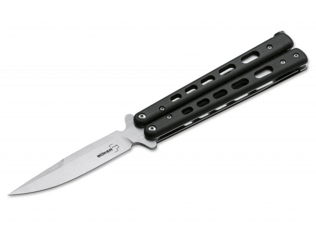 Motýlek nůž se sponou na opasek vyrobený ze 440-C oceli.