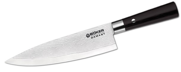 Tyto stylové kuchyňské nože z Bokeru jsou opravdu uměleckým dílem. Damašková ocel vyrobena z 37 vrstev nerezové oceli VG10. Poskytuje vynikající stabilitu ostří při každodeních řezných úkonech. Rukojeť je z černého vrstveného dřeva, nerezovým kroužkem a čepem. Každý nůž je dodáván v dárkové krabičce vyložené hedvábím.