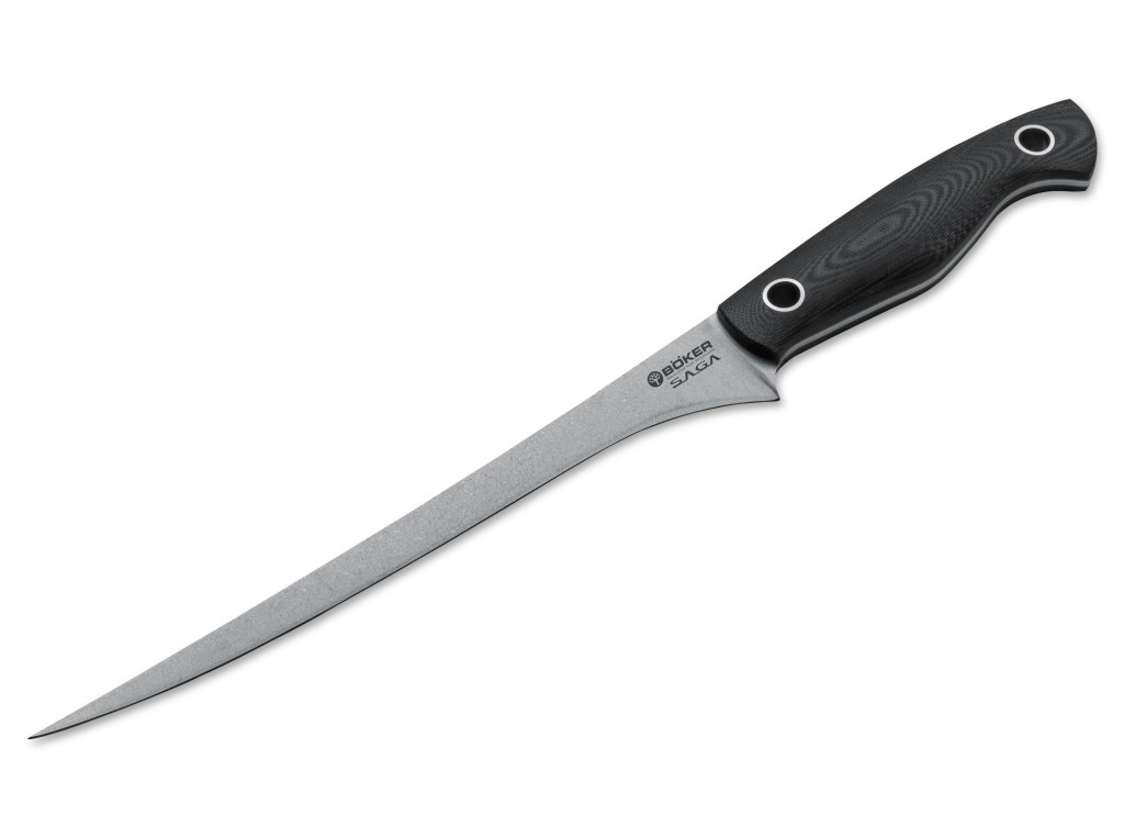 Saga filetovací nůž je výborným pomocníkem v kuchyni, ale také na každé lovecké a rybářské výpravě. Tvarovaná rukojeť G10 pro vynikající uchopení. Nůž je dodáván s Kydexovým pouzdrem.