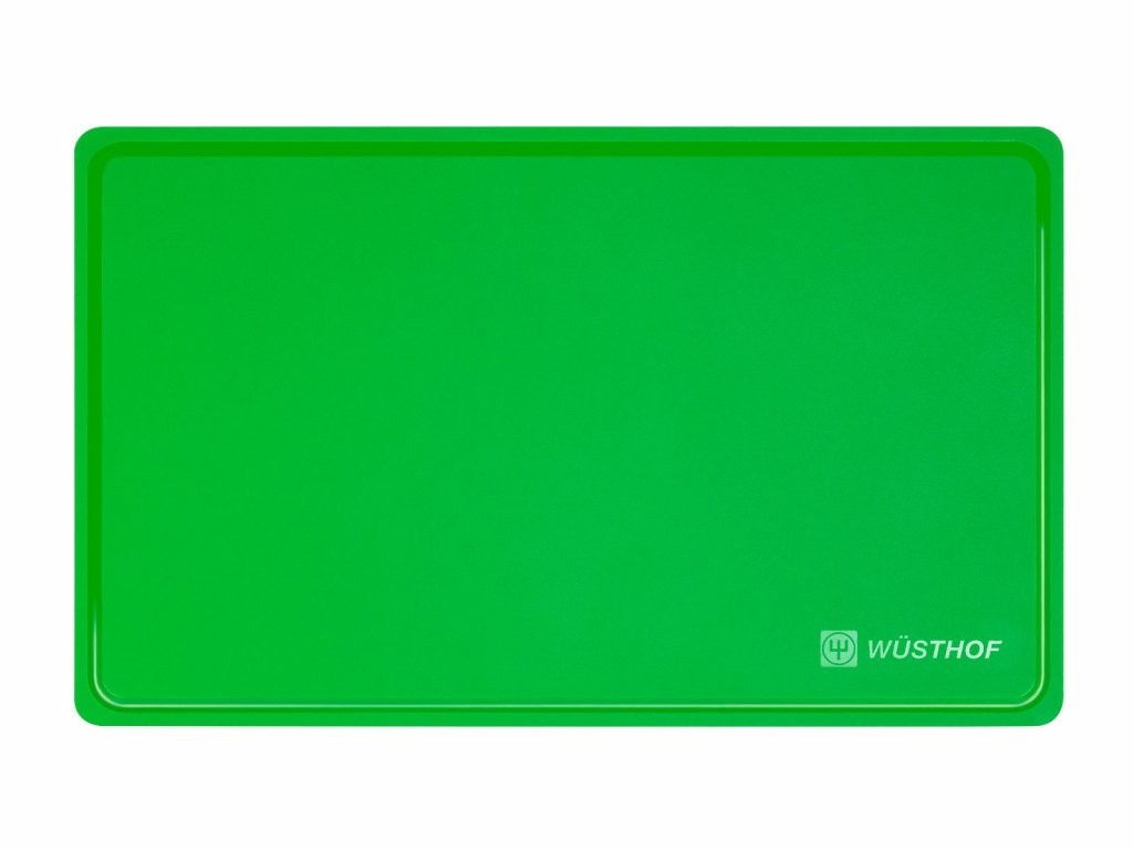 Každá kuchyně potřebuje poctivou krájecí podložku. Wüsthof nabízí novou elegantní a funkční krájecí podložku vyrobenou z poškrábání odolného termoplastického polyuretanu (TPU), přinášející svěží barvy do vaší kuchyně. Speciální materiál s vysokou mírou flexibility chrání citlivé čepele nožů. Nože proto zůstávají ostré delší dobu. Plastový materiál neabsorbuje pachy a vůně a může být sterilizován. Jednoduše polévejte plastovou podložku vařící vodou a během 30 sekund bude sterilizována. Moderní krájecí podložka pro ostré nože, nepostradatelná v každé kuchyni.