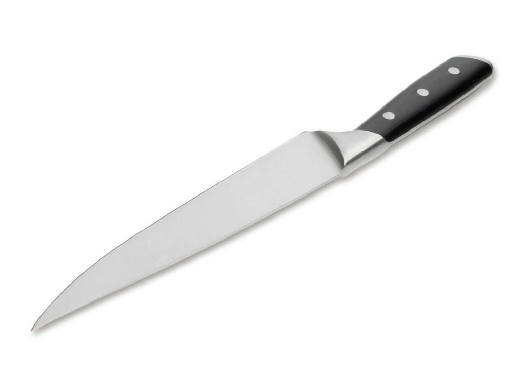 Carving Knife je díky svému dlouhému a štíhlému tvaru ideální pro přesné krájení masa a ryb. Extrémně jemné plátky lze krájet stejně snadno jako kostky nebo rovnoměrně silné tranše. Carving Knife je o něco pružnější než jiné nože a optimálně klouže po mase.