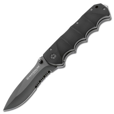 Tento taktický nástroj zvládne všechny mise! Modifikovaná 440 Spear čepel s efektivním dílčím zoubkovaným ostří pro hrubé zacházení! Linerlock poskytuje potřebné zabezpečení.Výraznější drážky na prsty na černé hliníkové rukojeti jsou pro vysokou úroveň bezpečnosti a pro všechny řezání úkoly.