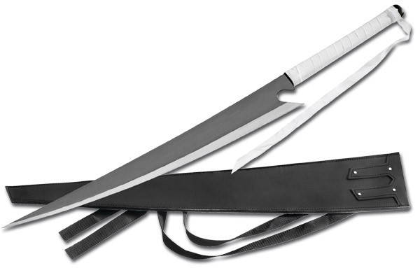 Opravdu působiví meč! Mohutné ostří 74 cm s maximální šířkou 9 cm,dá se tedy hovořit o skutečně impozantním dekorativním meči. Čepel je vyrobena z uhlíkové oceli. Konstrukce meče enstammt je z japonského manga, ve kterých Ichigo také hraje svou roli. Meč je dekorativní. Čepel je černěná a leštěná do ostří. Dřevěná rukojeť je obalena s bílou látkou a tak odpovídá dokonale jeho vzoru.S mečem je dodáváno černé pouzdro na záda.