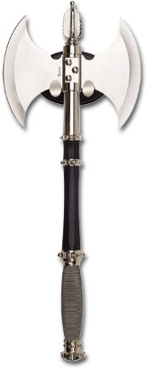 Působivá bitevní sekera. Poutač pro každou kolekci. Rukojeť má vinutí ze stříbrného drátu, čepele sekery jsou vyrobeny z nerezové oceli 420. Dodáváno s nástěnným displejem, který umožňuje správnou prezentaci sekery. Sběratelský kousek, není vyroben pro reálné použití.
