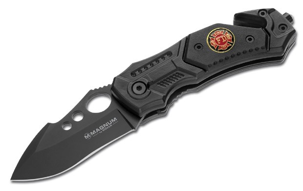 Tento šikovný malý nůž na záchranu by měl být v každém autě.Řezač pásů,kladívko na sklo a černá 440 ocel, aby se dosáhlo pomoci v případě poruchy nebo nehody. Černá plastová rukojeť se znakem.