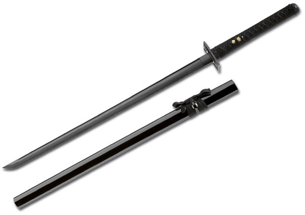 Tento ninja meč je impozantní zbraň! Na rozdíl od samurajských mečů, které jsou lehce zakřivený, má ninja meč čepel rovně a zpravidla se čtvercovou tsubou.Ručně kovaná čepel je vyrobena ze 200 vrstev černého damašku.Detekovaná Damaststruktura umocňuje výjimečný charakter tohoto jemného meče.Kovaný Ninja Sword Damašek je dekorativní. Černá rukojeť je vybavena autentickou ray kůží zabalené do Mekugis a pohodlně padne do ruky. Dodáno s černým lakovaným dřevěným pouzdrem a s autentickým bavlněným pouzdrem na uskladnění. Celková délka 103 cm. Ostří 71 cm. Tloušťka 7.5 mm. Hmotnost 1,4 kg.