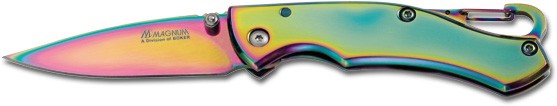 Série Rainbow s vlastnostma titanu s PVD povlakem rukojeti a 440 z ušlechtilé ocele v barvě duhy.