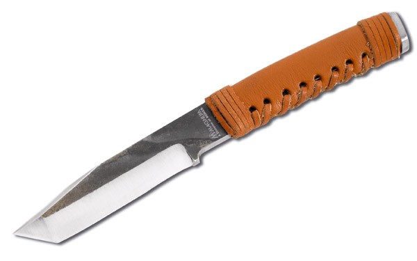 Tento masivní 440 nerezový nůž o tloušťce 6 mm sahá přes rukojeť.Do kůže zabalená rukojeť padne do ruky pohodlně a bezpečně.Mimořádně silný tvar čepele je ideální pro řezání, řezbářské a jiné úkoly. Kožené pouzdro.
