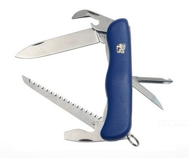 VYBAVENÍ: 1 čepel, pilník, otvírač lahví/šroubovák/drážka na odizolování vodičů, otvírač na konzervy, křížový šroubovák, bodec, poutko, střenka, pouzdro