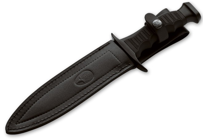 Mountain – Zamak rukojeť s povlakem Kraton. Čepel z nerezové chromové oceli (1-42). Plášť vyroben z černé laminované usně.