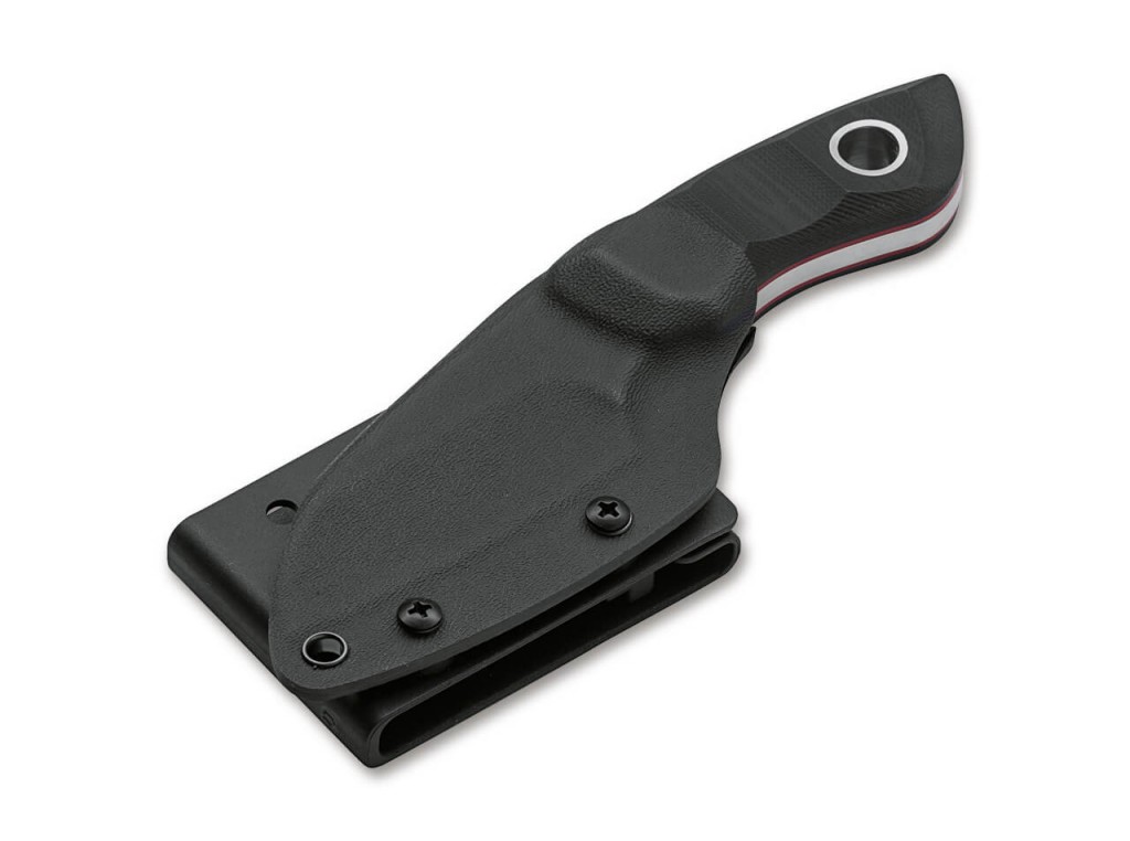 Boker Plus PryMate Pro od dánského výrobce nožů Jespera Voxnaese se svou enormní pevností čepele zvládne každou výzvu a je ideální i pro těžší práce. Poměrně kompaktní rozměry nože jasně zdůrazňují nesrovnatelnou stabilitu full tang konstrukce z D2. Ergonomicky frézované šupiny rukojeti z micarty a hluboké drážky pro palce poskytují ruce optimální úchop, zatímco vrstva červených vláken tvoří atraktivní kontrast k mohutné hřbetu čepele. Navzdory neobvyklým rozměrům ostří Stonewash zajišťuje duté broušení vyvážené řezné vlastnosti. Kydexové pouzdro na míru lze připevnit k dodanému adaptéru na opasek, což umožňuje širokou škálu možností nošení. Charakteristické duté nýty slouží také jako otvor pro lanko.
