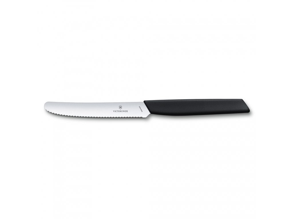 Precizně broušené vlnkované ostří nože primárně určeného na rajčata, umožňuje snadné řezání i krájení těch nejmenších kousků masa, rovněž tak pečiva, sýrů, úhledných kousků pizzy nebo slaných koláčů.