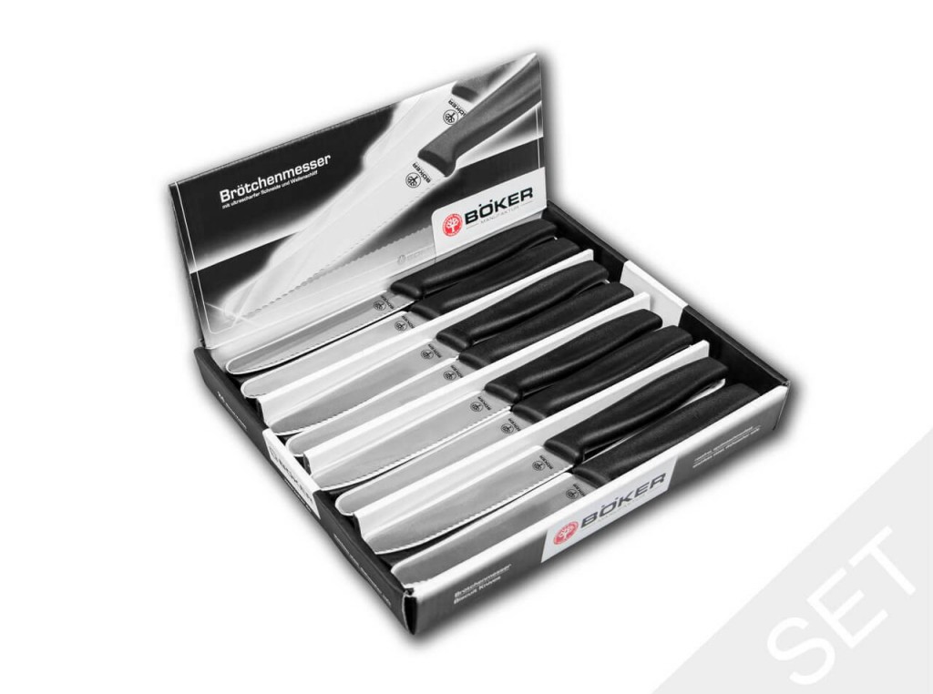 72 všestranných nožů Boker Sandwich Knives je vybaveno čepelemi z vysoce kvalitní nerezové oceli s ostrým zoubkovaným ostřím. Jsou také ideální pro krájení ovoce a zeleniny a jako nože na rajčata nebo chleba. Černé syntetické rukojeti jsou ergonomicky tvarované a díky hrubému povrchu vždy padne bezpečně do ruky. Dodáváno ve třech atraktivních prezentačních boxech.