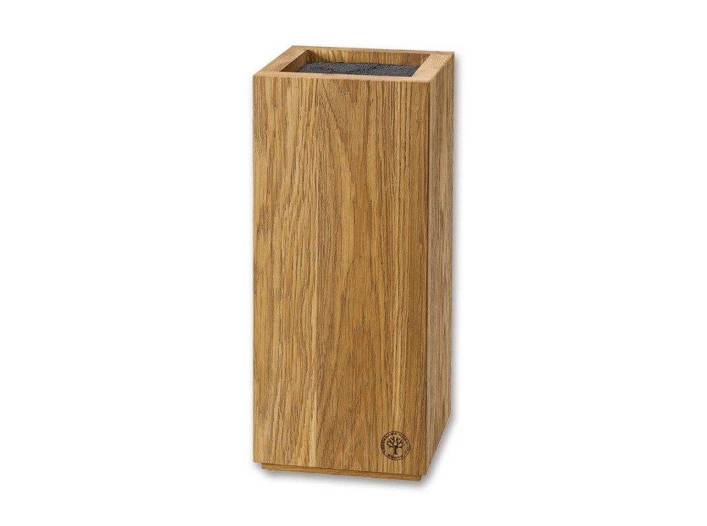 Boker Knife Block Square promění vaši kuchyni v designový kousek. Vysoce kvalitní blok z masivního dubu zajišťuje bezpečné postavení a zdá se, že se vznášel nad pultem díky své jemné stínové mezeře. Jednotlivé vzory dřeva dělají z každého nože jedinečný kus. Krásný dubový blok byl také kartáčován, aby získal krásné zrno. Blok na nože má dostatek místa až pro deset nožů a nabízí flexibilní skladování. Boční strany jsou vybaveny magnety, takže si své oblíbené nože můžete vystavit a mít je stále po ruce. Každý blok nože má jemné razítko značky. Vložku z jemných plastových štětin lze vyjmout pro čištění. Nože nejsou součástí dodávky. Výška: 28 cm.Šířka: 12 cm