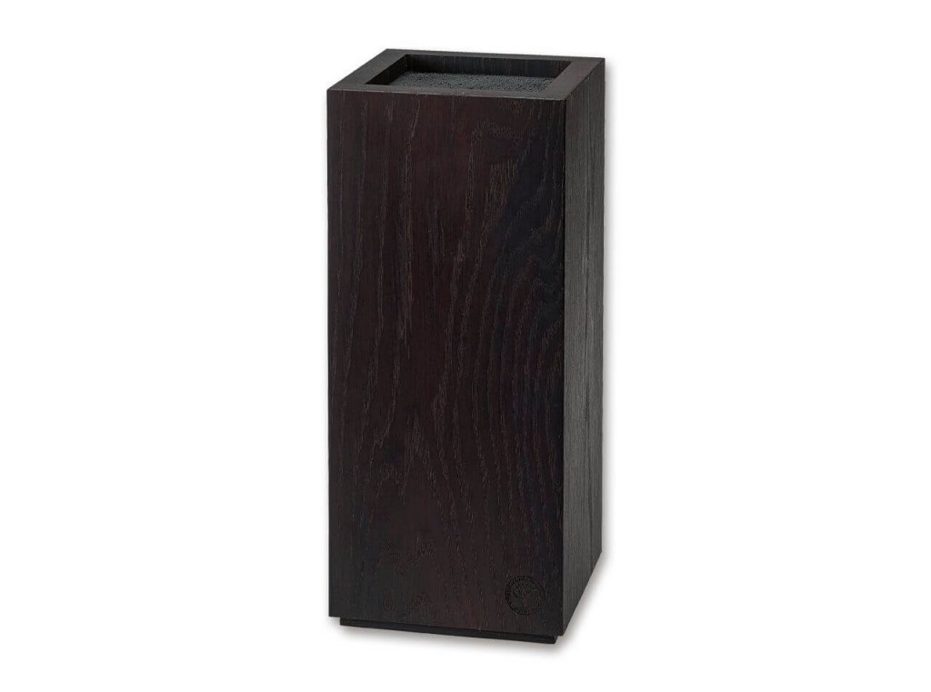 Koncept Boker Knife Block Square promění vaši kuchyni v designový kousek. Vysoce kvalitní blok kouřového dubu zajišťuje bezpečné postavení a zdá se, že se vznášel nad pultem díky své jemné stínové mezeře. Jednotlivé vzory dřeva dělají z každého nože jedinečný kus. Blok na nože má dostatek místa až pro deset nožů a nabízí flexibilní skladování. Boční strany jsou vybaveny magnety, takže si své oblíbené nože můžete vystavit a mít je stále po ruce. Každý blok nože má jemné razítko značky. Vložku z jemných plastových štětin lze vyjmout pro čištění. Nože nejsou součástí dodávky. Výška: 28 cm.Šířka: 12 cm