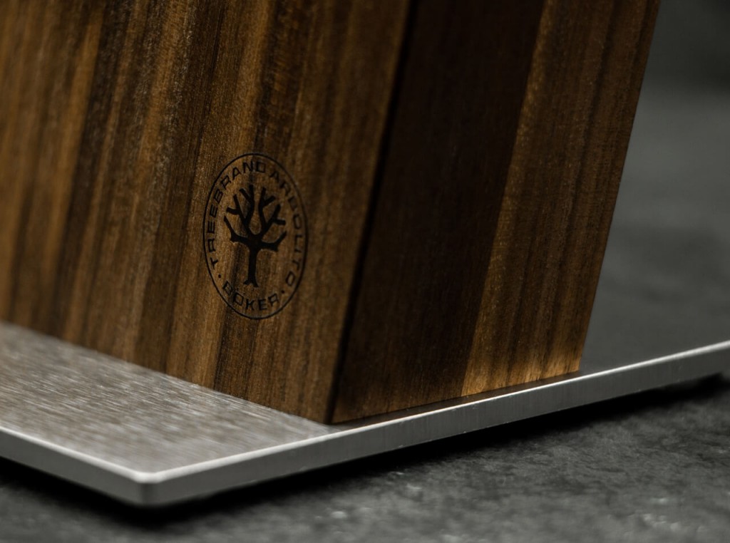 Ručně vyráběné nože si zaslouží atraktivní skladování. Boker Knife Block Style je k dispozici v masivním kartáčovaném dubu, ořechu a kouřovém dubu. Díky kombinaci prémiových materiálů z masivního přírodního dřeva a broušené nerezové oceli je dokonalým exkluzivním doplňkem do každé kuchyně. Minimalistická, prostorově nenáročná konstrukce pojme až osm nožů, a to díky skrytým magnetům. Šikmý dřevěný blok stojí bezpečně na pevné nerezové základně. Gumové nožky na spodní straně nerezové desky zabraňují posunutí bloku nože a případnému poškrábání pracovní desky. Levý dolní roh byl pečlivě označen jemným logem Boker. Nože nejsou součástí dodávky. Výška: 24,5 cm Šířka: 10 cm Hloubka: 25 cm