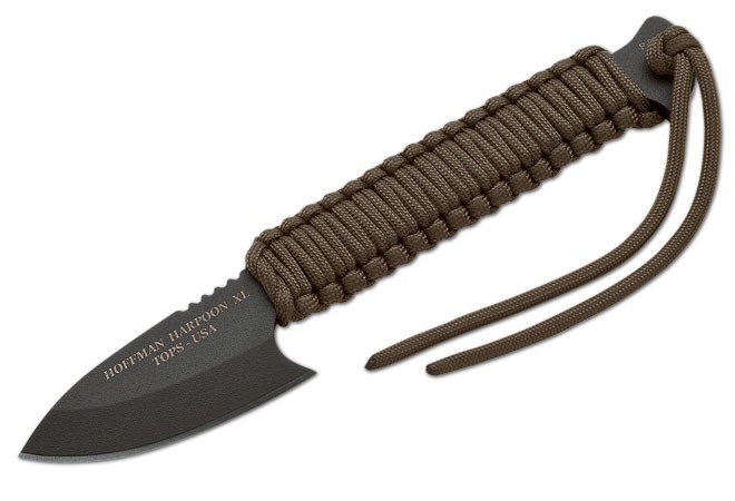 Čepel tohoto inovativního nože pro přežití má tvar harpuny. Přes jeho neobvyklý tvar, může být použit jako nůž kopí, šipka harpuny a samozřejmě jako řezný nástroj. Zabalená rukojeť 1095 uhlíkové oceli nabízí komfortní pocit a bezpečné uchopení. Dodává se s pláštěm z nylonu.