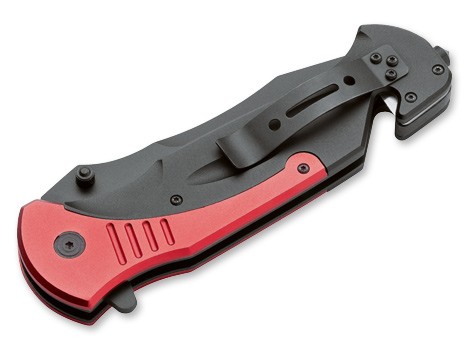 Masivní a působivé záchranné nůže pro náročné použití. Výrazně barevná kombinace červené a černé ilustruje použití tohoto nože. Zkonstruován jako nouzový nástroj s bodákem na sklo, řezač bezpečnostních pásů a napůl zubaté ostří. 440 nerezová čepel je vždy připravena pro všechny druhy použití. Pozlacený znak je věnován mužům a ženám, kteří stojí v řadách hasičů. S klipem a Linerlockverriegelung.