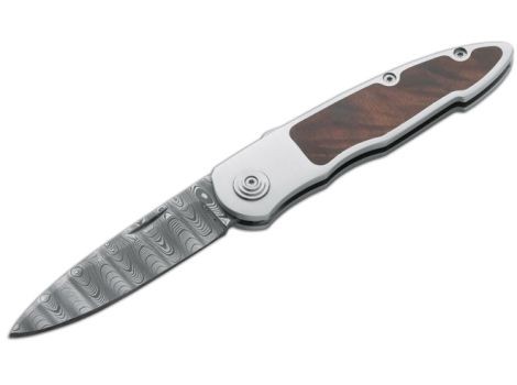 Kapesní nůž Merlin má elegantní design. Nerezová damašková čepel je vyrobena Chadem Nicholsnem a číní z tohoto nože unikátní sběratelský kousek. Nůž je bez klipu a je dodáván v elegantnim boxu s certifikátem pravosti.