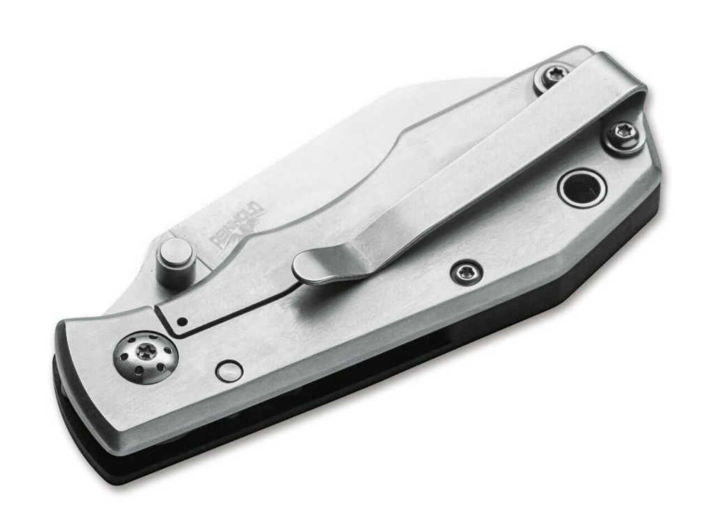 Boker Plus Joule, navržený Michaelem Reinholdem, je praktický kapesní nůž typu framelock s čepelí Wharncliffe, který je ideální jako řezačka na krabice a pro další malé až střední řezací práce. Saténová čepel je vyrobena z D2 a otevírá se odnímatelným palcovým kolíkem na obou stranách. Zatímco zadní nerezová váha rukojeti obsahuje zámek rámu, přední stupnice a distanční vložky jsou vyrobeny z robustního G10. Dekorativní šroub osy čepele je jasně zakřivený. Se zesíleným otvorem na šňůrku, hlubokou přepravní sponou a vysoce kvalitním nylonovým pouzdrem pro skladování.