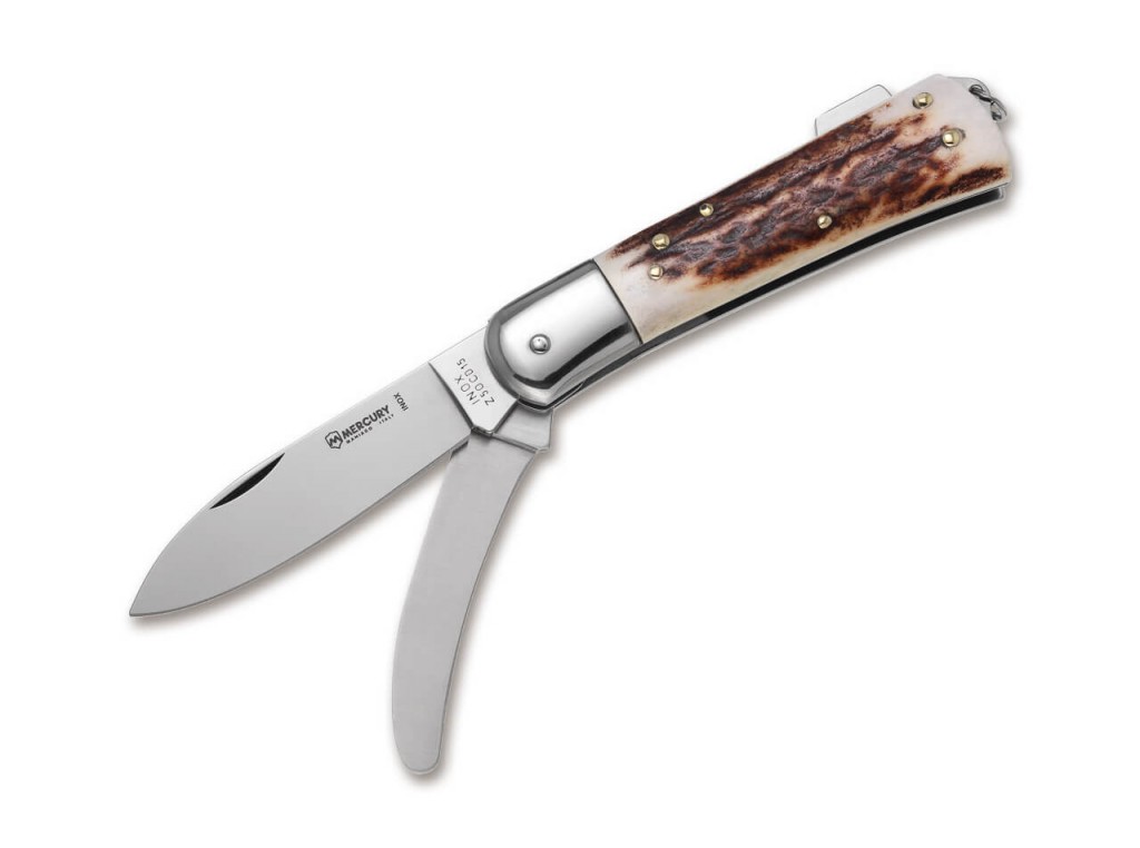 Robustní lovecká řada od Mercury je vybavena tří milimetrovou hlavní čepelí ze Z50CD15, která je uzamčena pomocí Backlock a navíc je vybavena guttinovou čepelí. Tang z nerezové oceli a podložky z nerezové oceli podtrhují stabilní charakter a dělají z Hunting 980 dokonalého společníka v lovecké oblasti. S váhami z klasického jeleního a šňůrkového otvoru.