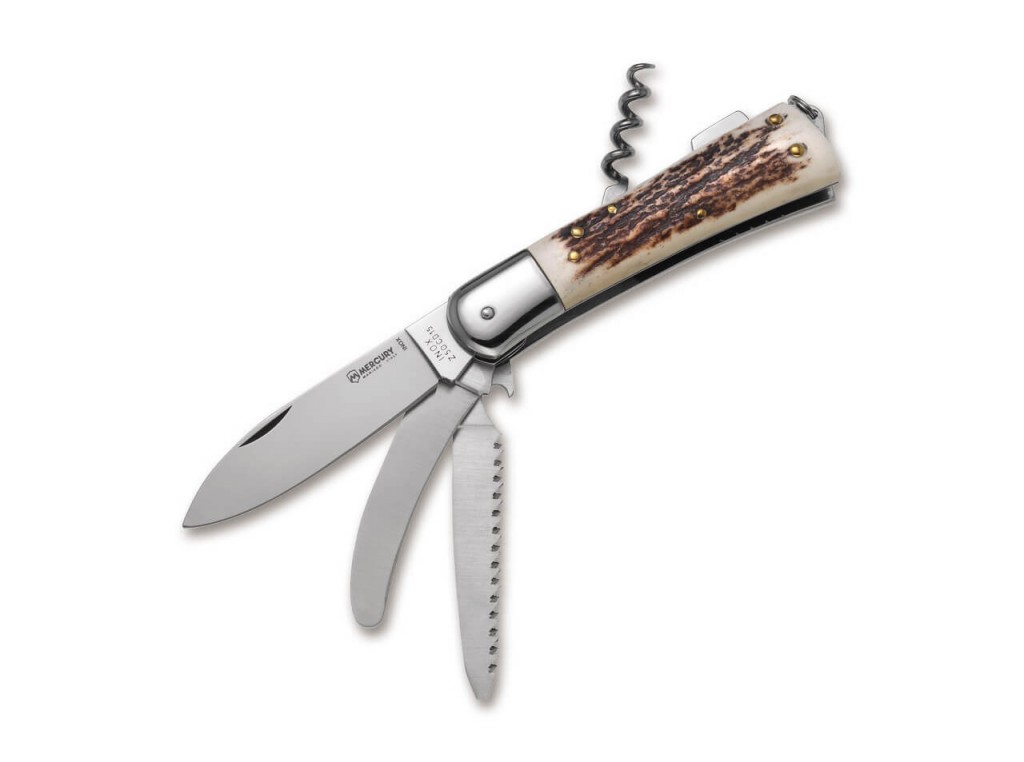 Robustní lovecká řada od Mercury je vybavena třímilimetrovou hlavní čepelí ze Z50CD15, která je uzamčena systémem Backlock a je navíc vybavena pilou, vykuchávacím nožem a vývrtkou. Tang z nerezové oceli a podložky z nerezové oceli podtrhují stabilní charakter a dělají z Hunting 980 dokonalého společníka v lovecké oblasti. S váhami z klasického jeleního a šňůrkového otvoru.
