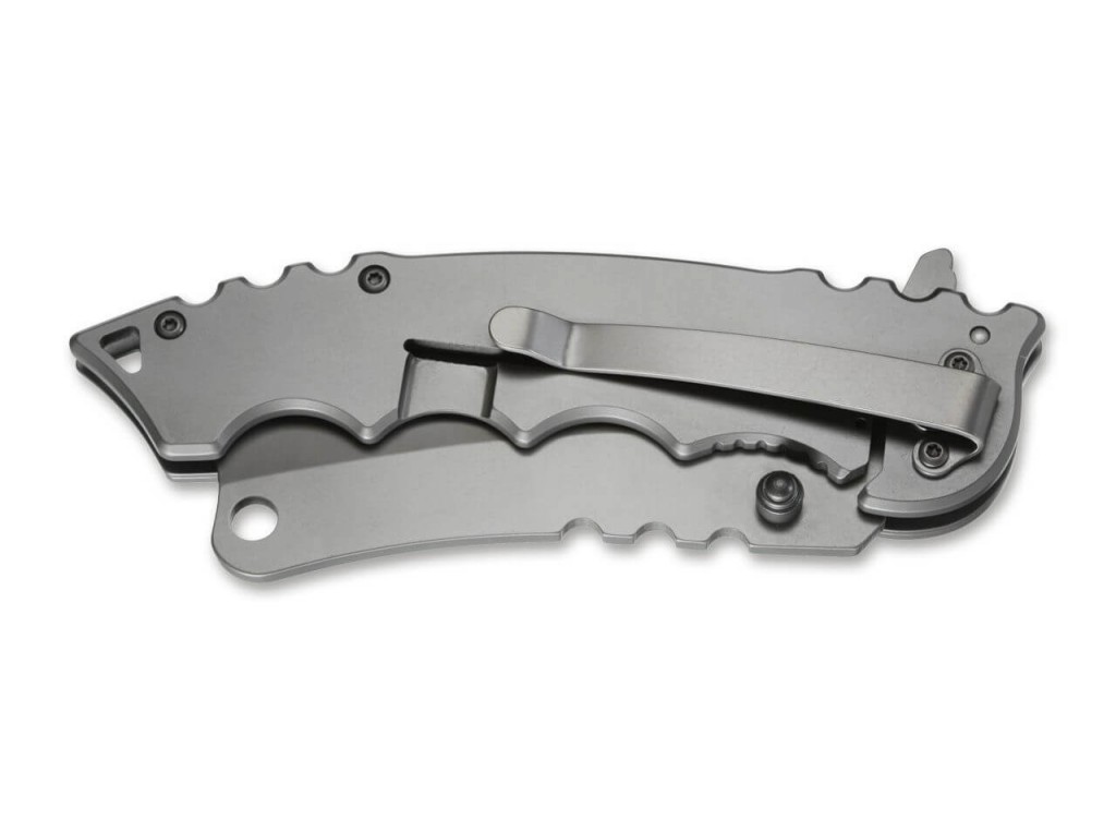 Neobvyklá čepel Magnum Mortem je vyrobena ze 440 A a otevírá se pomocí ploutve nebo oboustranného špendlíku. Zatímco je locklock připevněn k zadní stupnici, přední část nerezové rukojeti je ozdobena stylizovanou lebkou. Výrazné prohnutí na dlani pomáhá dosáhnout kontrolovaných řezů. S klipem (špičkou dolů) a otvorem na šňůrku.