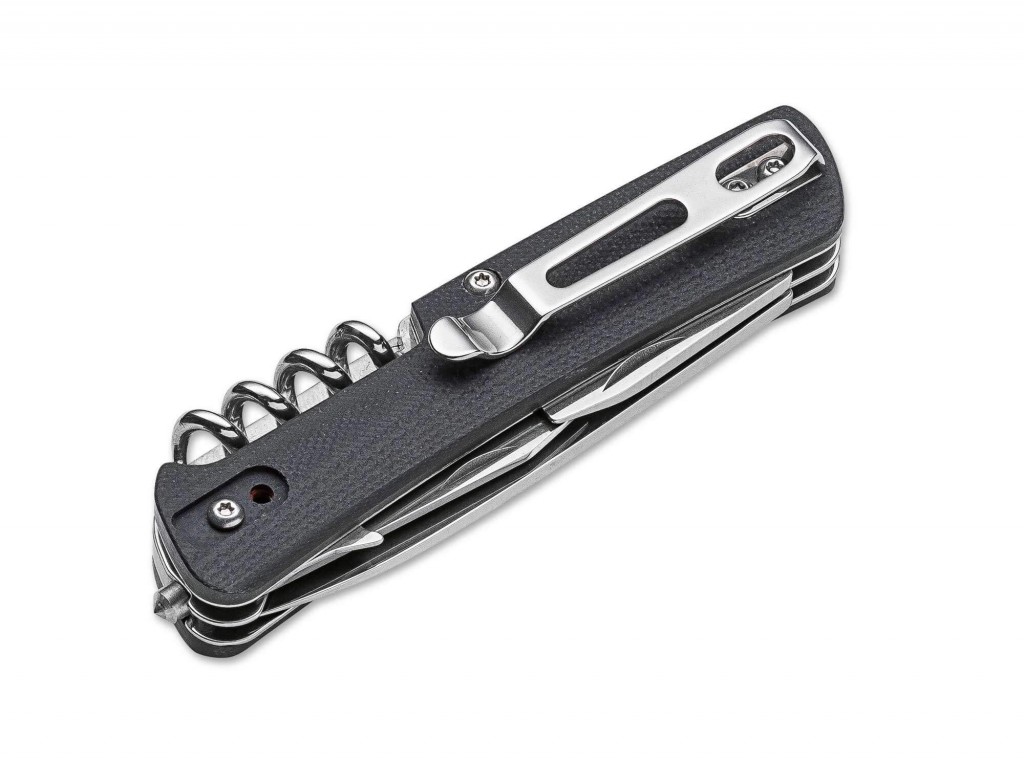 S Boker Camp Knife, jedním z předchůdců všech moderních víceúčelových kapesních nožů, začala naše historie v roce 1869. Po téměř 150 letech úspěšného působení na trhu nastal čas převést tento osvědčený koncept na moderní nůž. Modernizovaná konstrukce, která je založena na pevných ocelových vložkách, je vložena do dvou tvarovaných stupnic rukojeti vyrobených z černé G10. Švédská ocel Sandvik 12C27 s tvrdostí Rockwell 58-60 HRC poskytuje vynikající retenci hran dutého broušeného kotouče. Vysoce kvalitní výroba s hladkým chodem čepele a optimalizovanou ovladatelností jsou důkazem prvotřídní kvality našich technických nástrojů Boker Plus. Čepel z nerezové oceli s dutou broušením je doprovázena těmito nástroji: rozbíječ skla, plochý šroubovák se zvedákem čepičky a odstraňovačem drátu, malá zoubkovaná čepel s plochým šroubovákem, korkový šroub, otvor na šňůrku, spona.