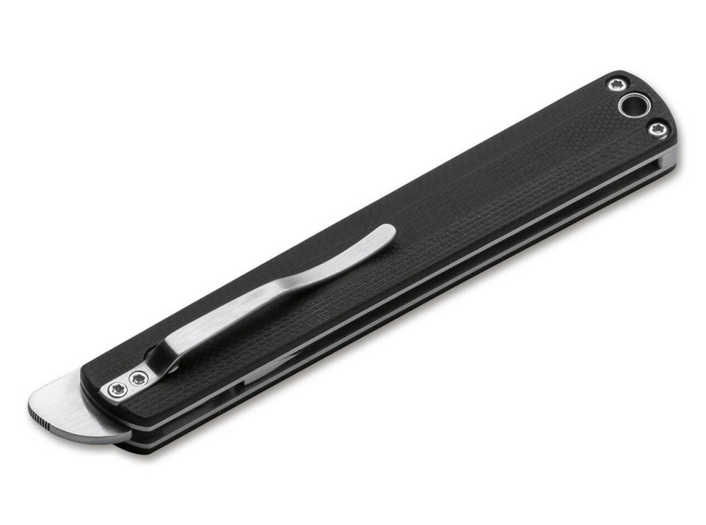 Štíhlá konstrukce a lehká konstrukce čepele Boker Plus Wasabi doplňují přímočarý design a klasickou japonskou čepel, aby z ní byl elegantní každodenní nůž. Čepel s kuličkovými ložisky se otevírá pomocí předního ploutve a je otevřená jako kluzný bod s aretační koulí. Čepel je vyrobena ze spolehlivých 440C. Rukojeť s nerezovými vložkami a frézovanou sponou. Váhy černé G10.